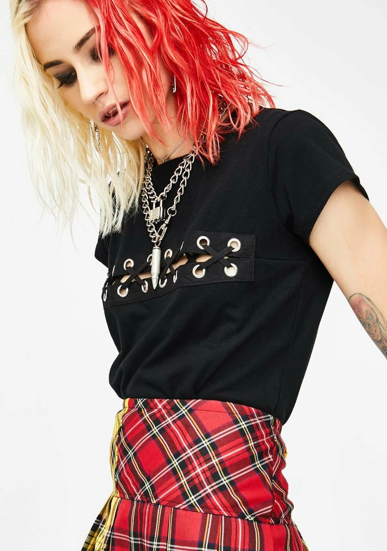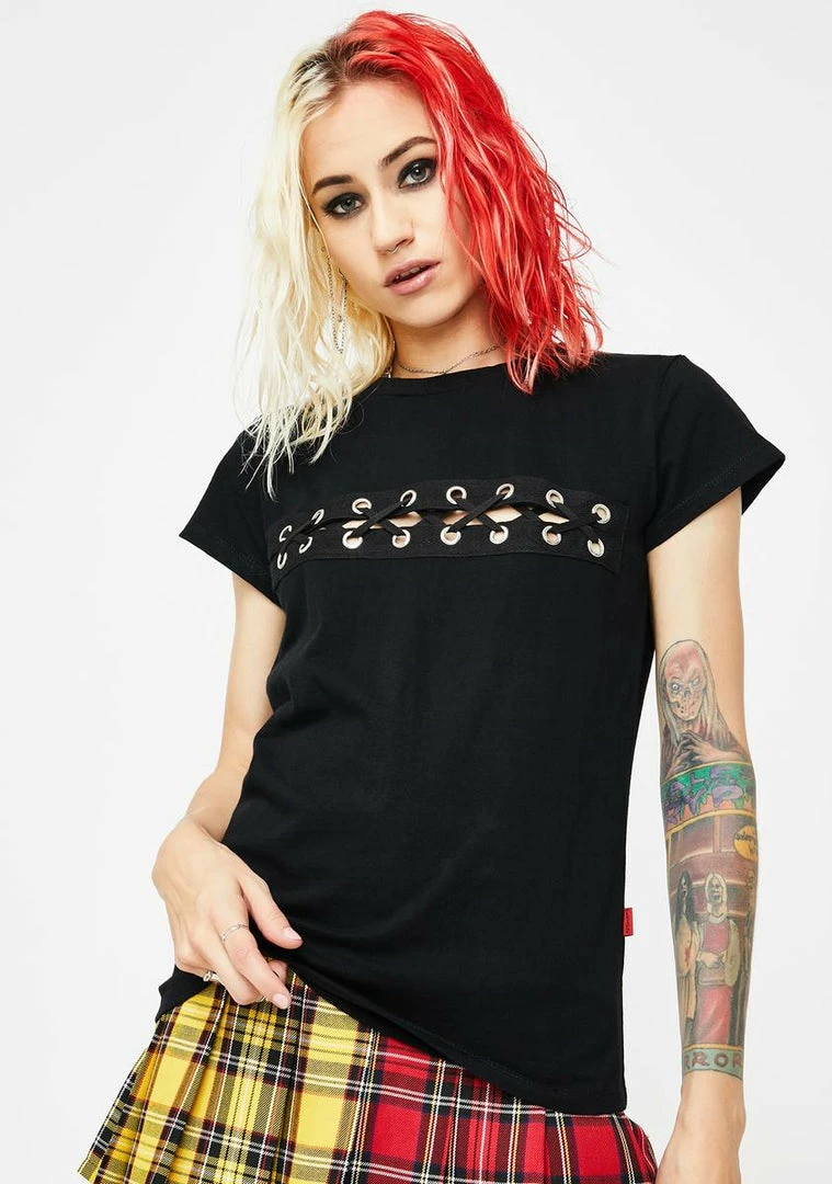 Tripp NYC Black Lace-Up Tee