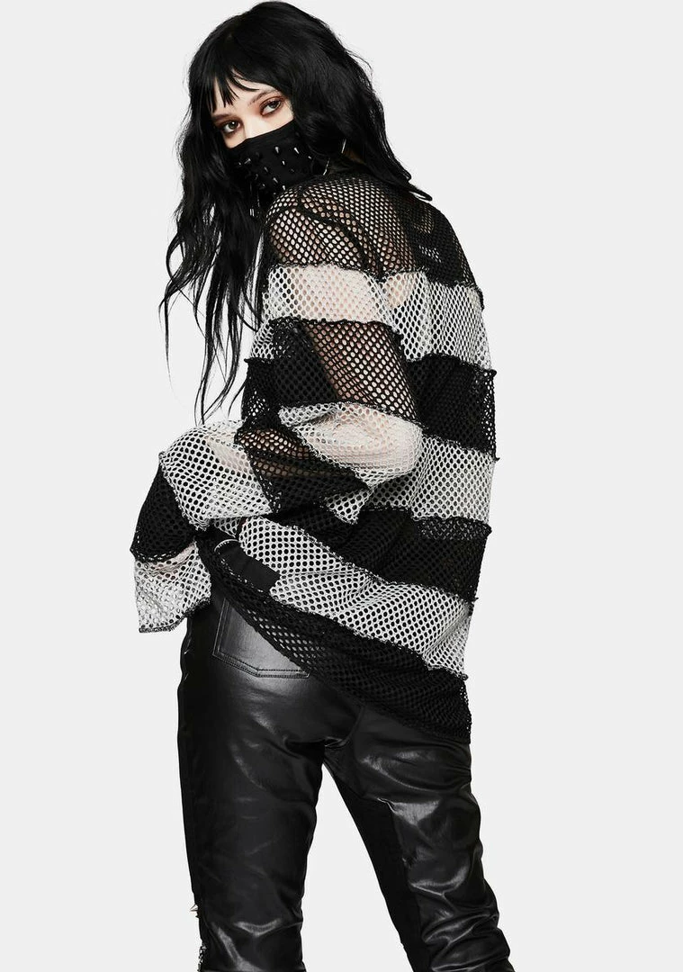 Tripp NYC Black Mega Mesh Stripe Jersey