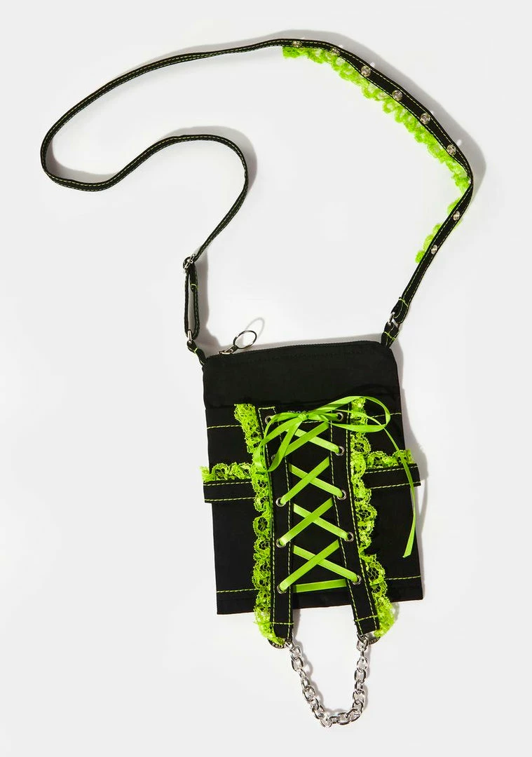 cuz youâre a darkstreet diva. This crossbody bag has lace-up details with lace trim and an adjustable shoulder strap.
