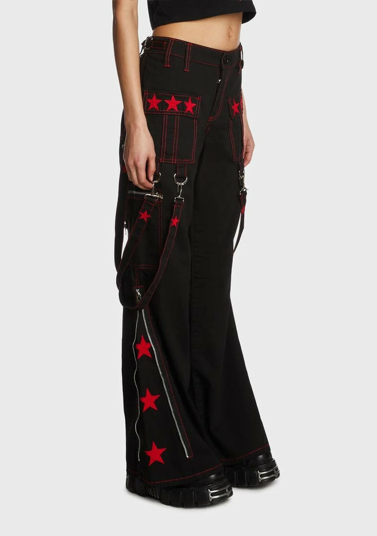 put it out in the universe. These pants come in a twill construction, with contrast stitching, pockets, star details, removable strap details, and a zip-flared hem.