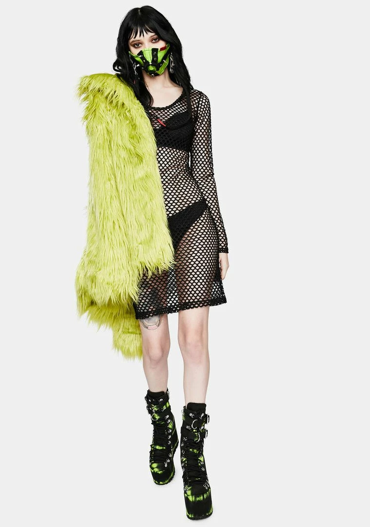has a chunky fishnet construction with a scoop neckline and stretchy fit.