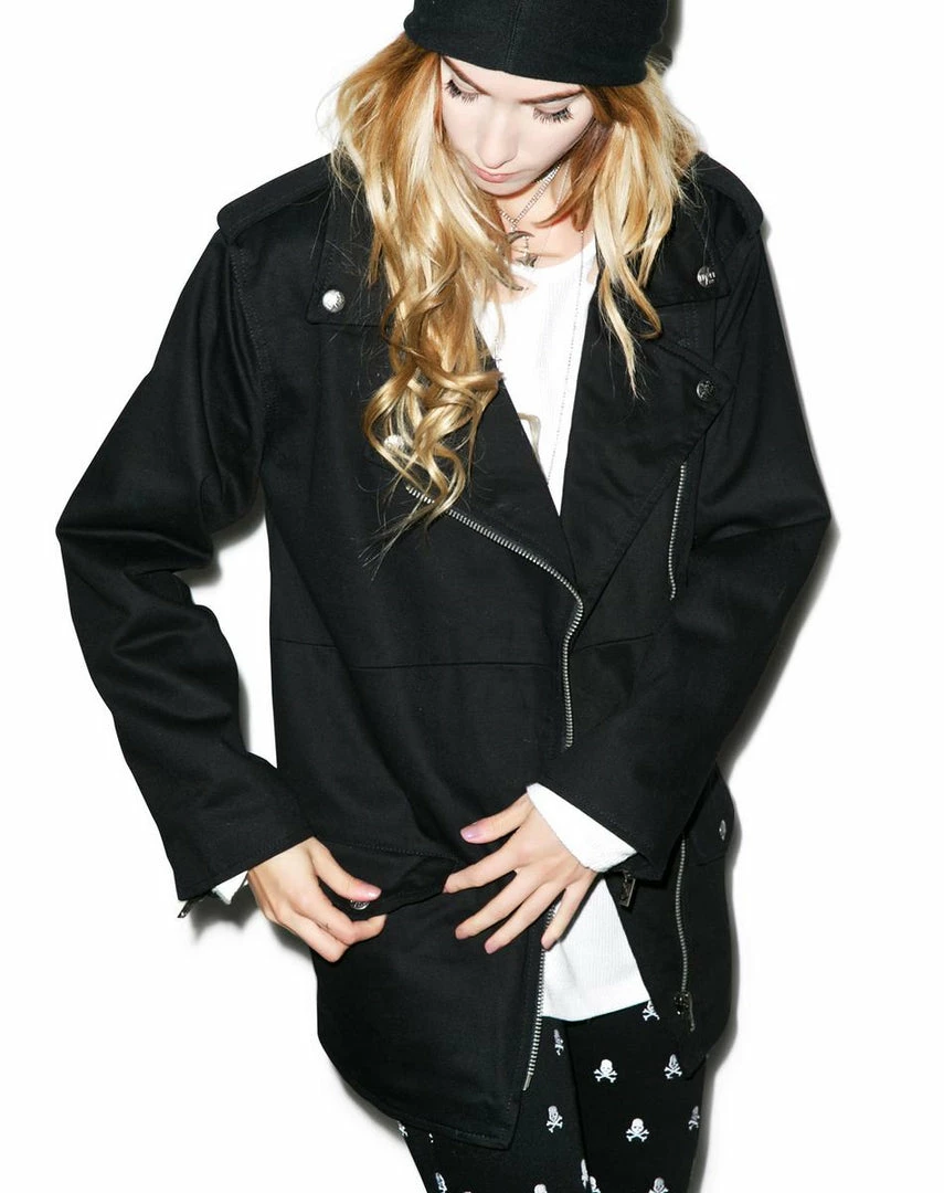 Tripp NYC Go Go Moto Jacket, cuz ya make us go crazy with yer style BB! This super sikk moto jacket is gonna get some engines revving. Featurin a comfy oversized relaXXXed fit with classick moto details like exposed zippers and a logo snap lapel collar. With a super durable canvas, multiple pockets and longer hemline this badazz BB is gonna have ya covered in the most epic way. Now go, go get into something dangerous?(°.°)?