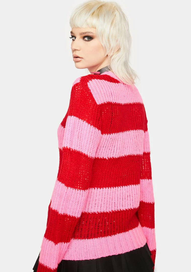 Tripp NYC Pink Red Open Stripe Knit Sweater Tops