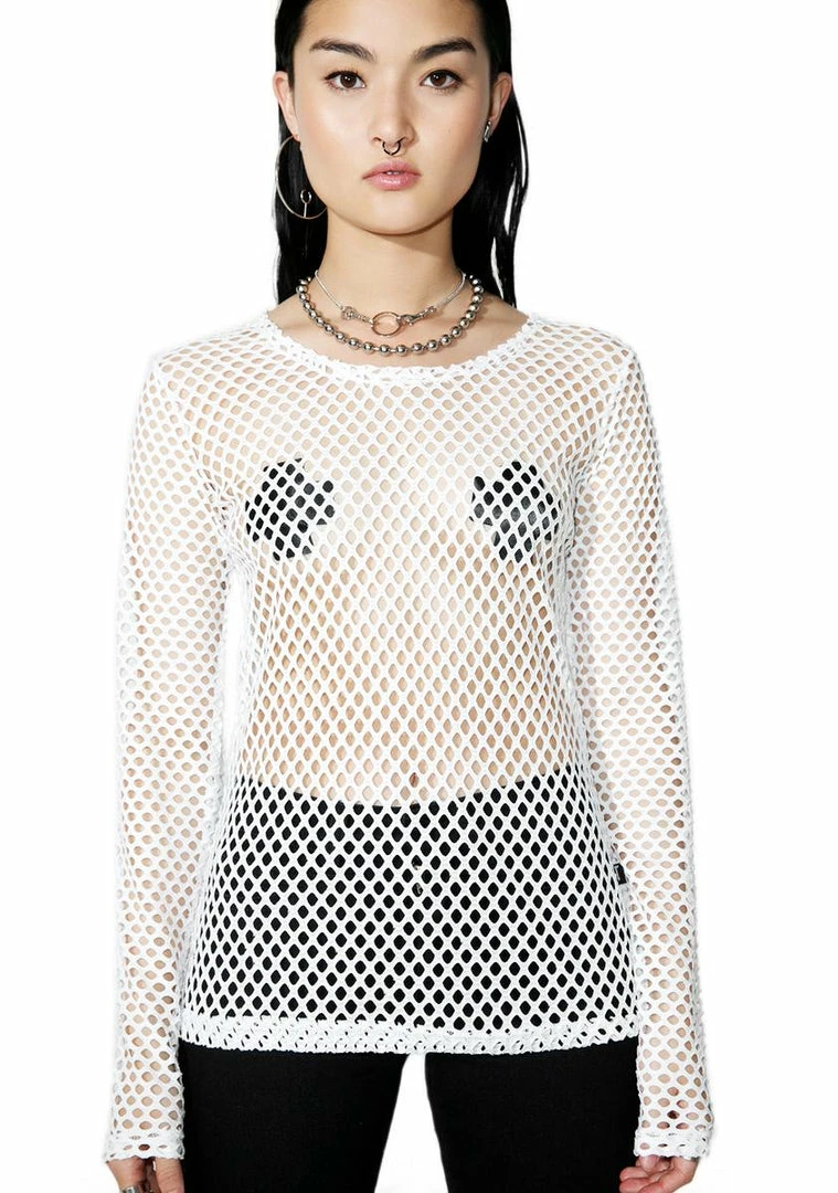 cuz yer quite the catch, arenât ya bb? This amazing long sleeve top features a stark white mesh construction, a slim cut, and rounded neckline to make it the perfect layerinâ piece or yer casual everyday wear if ya wanna get risky~