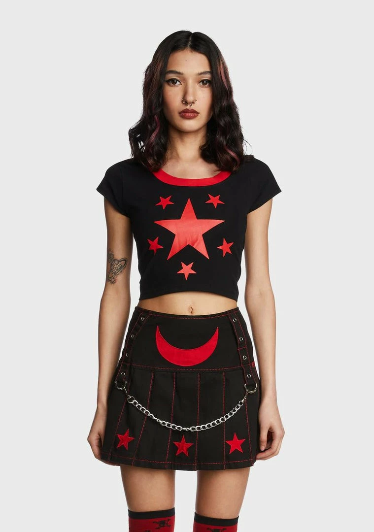 cuz I’m what you wish for. This top comes in a cropped fit, with a contrasting neckline, and a star print at front.