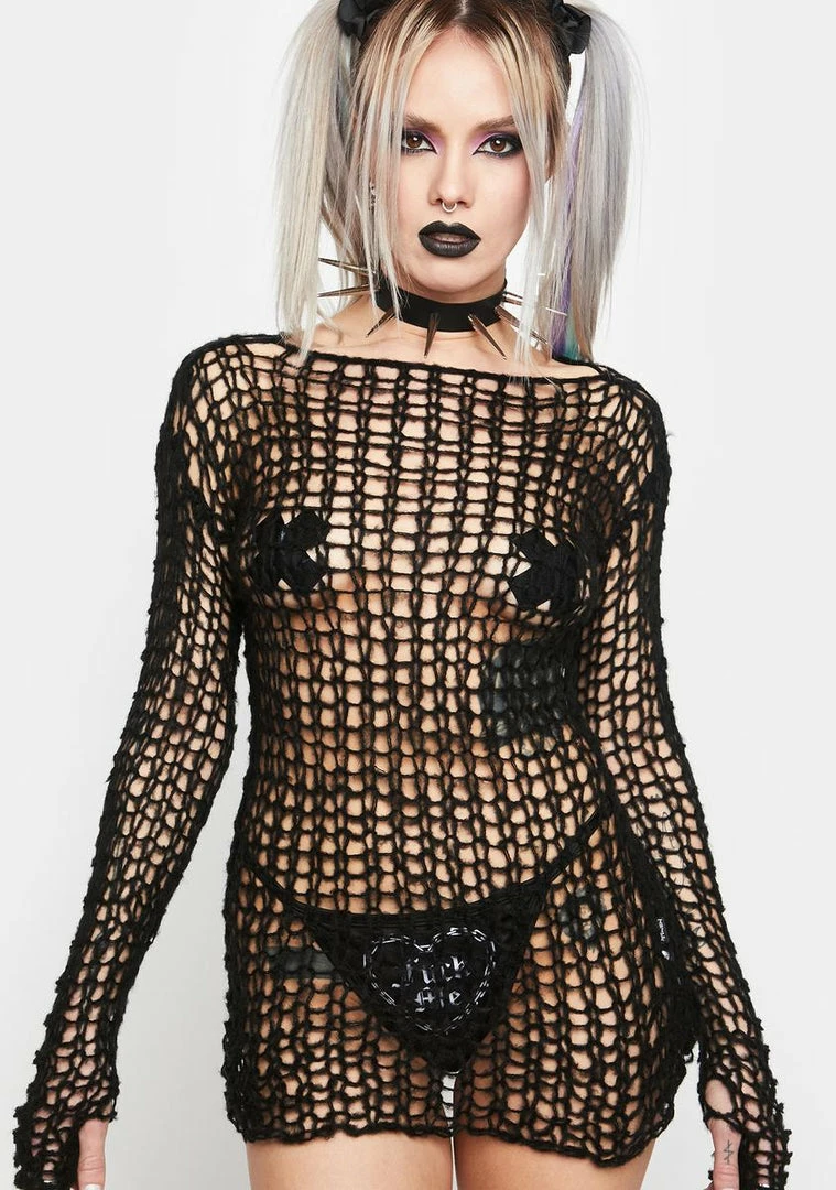 cuz you’re a rebel with all the cause! This layering sweater has an open knit construction, long sleeves, and a slightly oversized fit.