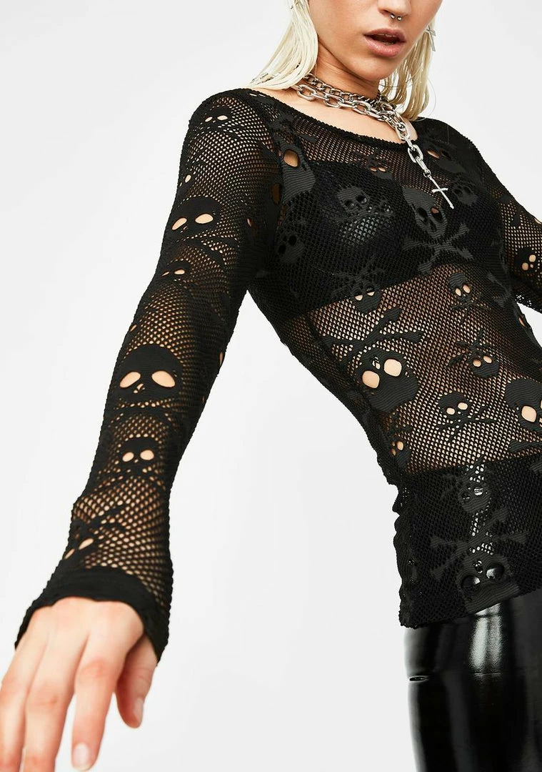 cuz you’re drop dead gorgeous bb! This fishnet top has a scoop neck and thicc mesh material with skulls all ova.