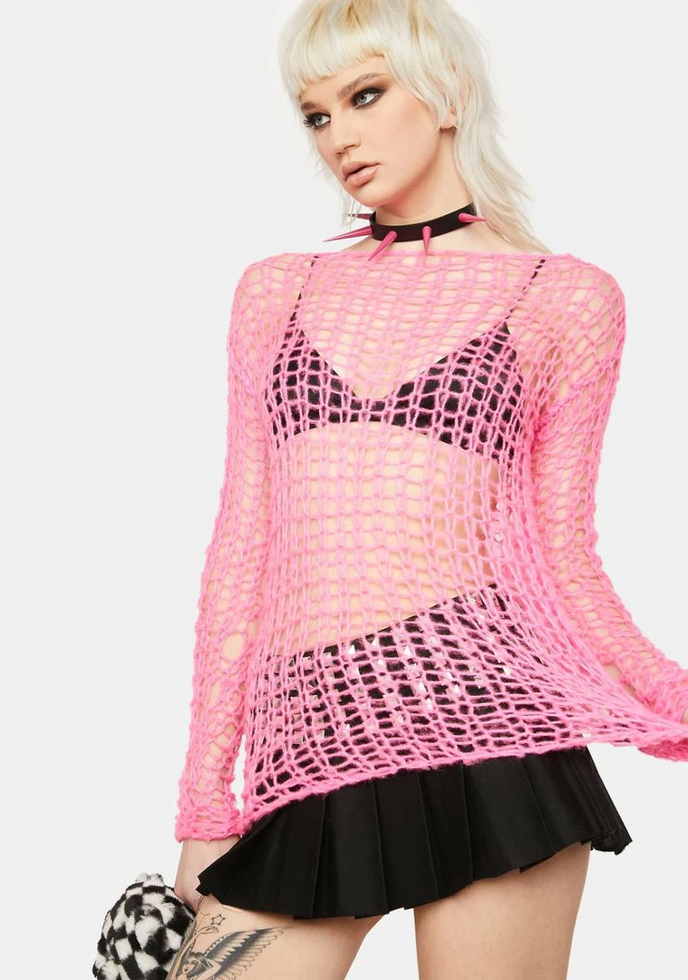 Tripp NYC Tops Pink Holy Punk Knit Sweater