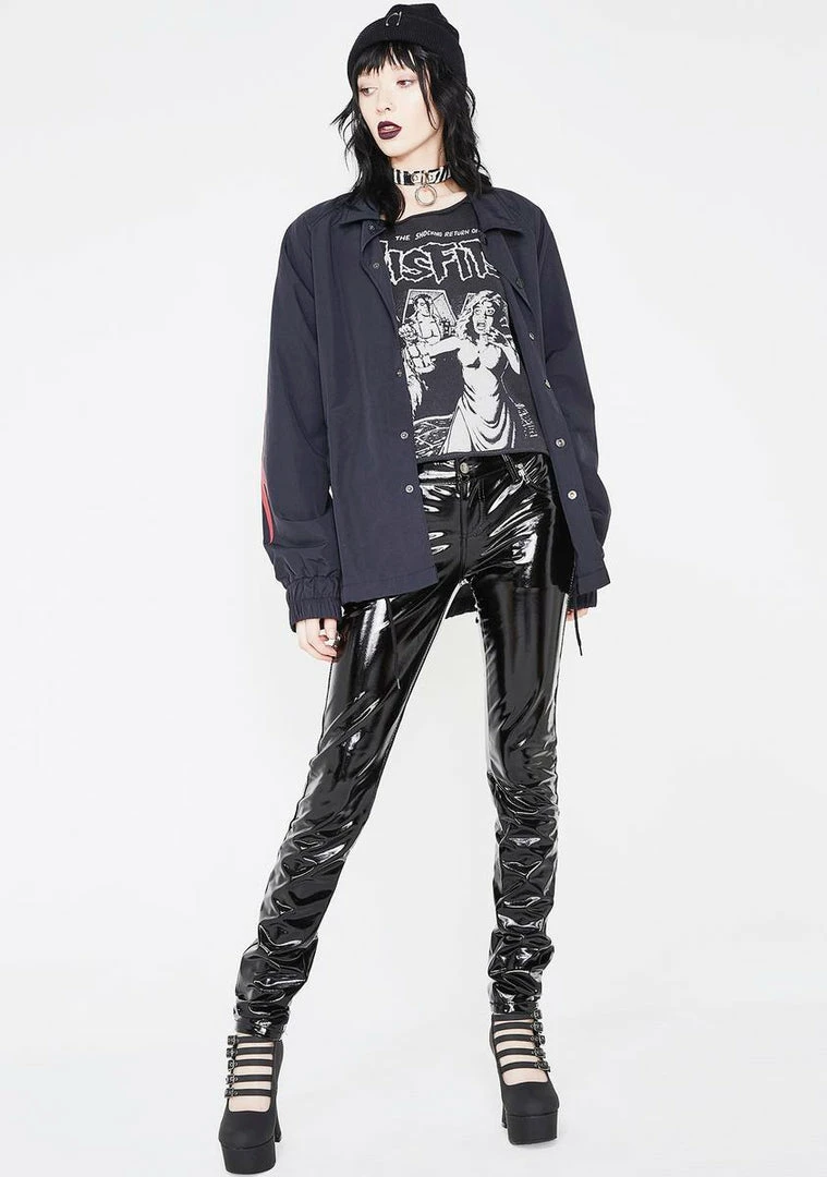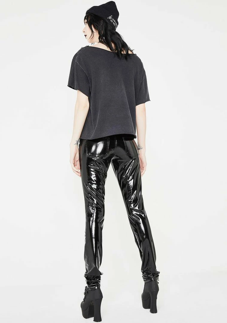 are sleek and sexy, kinda like someone we know. These mid rise pants feature a high gloss vinyl construction with a flattering slim fit, front and back pockets, zipper fly with button closure and a killer rock n’ roll vibe no one will be able to ignore.
